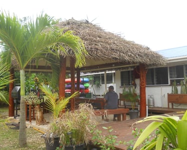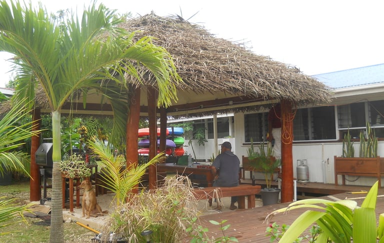 Thatched fale on the dock, a great place to gather with friends;
